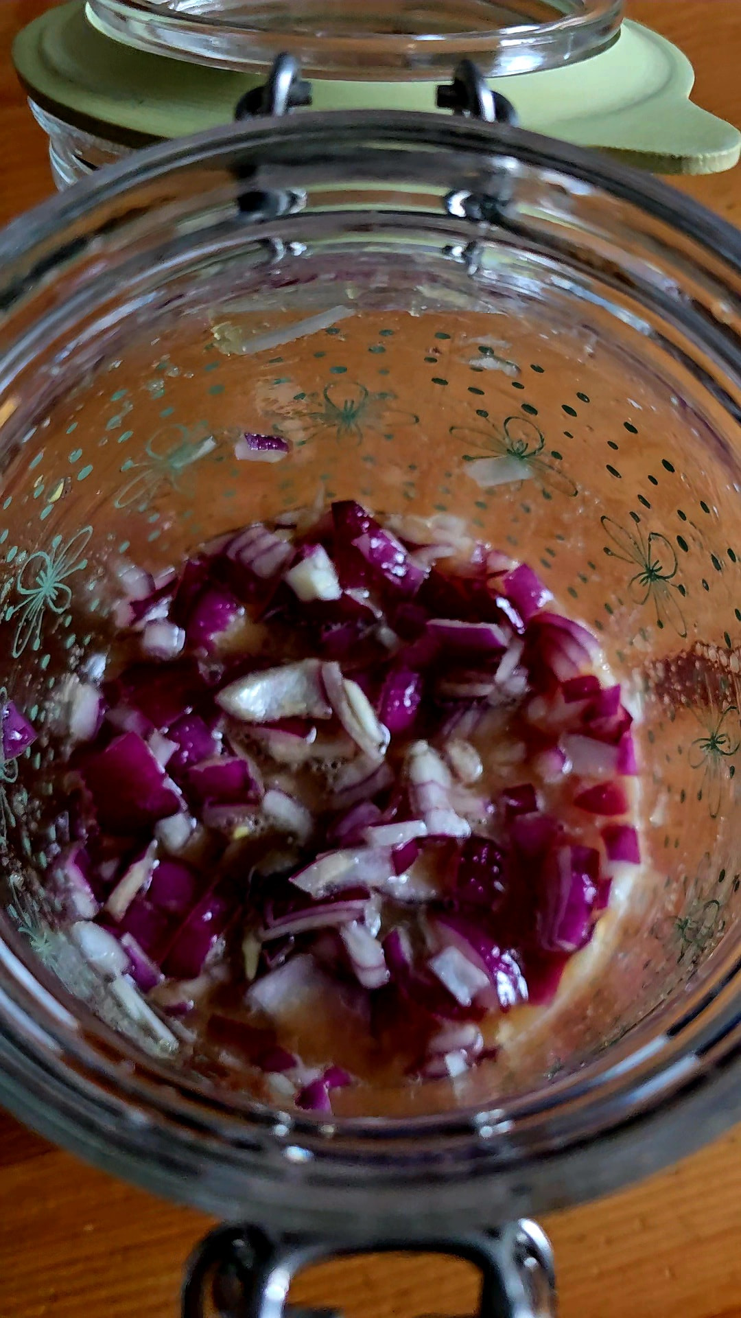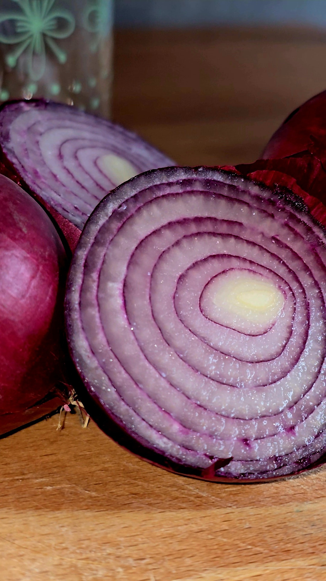 INFO: Zwiebeln (vorzugsweise rote Zwiebeln, weil diese einen höheren Anteil von Quercetin haben). Quercetin hat eine antioxidative Wirkung &’ neutralisiert freie Radikale. Dazu kommen entzündungshemmende (antiphlogistische) Fähigkeiten. Es unterstützt das Immunsystem &’ hat sogar eine senolytische Wirkung - es verlangsamt bestimmte Alterungsaspekte.